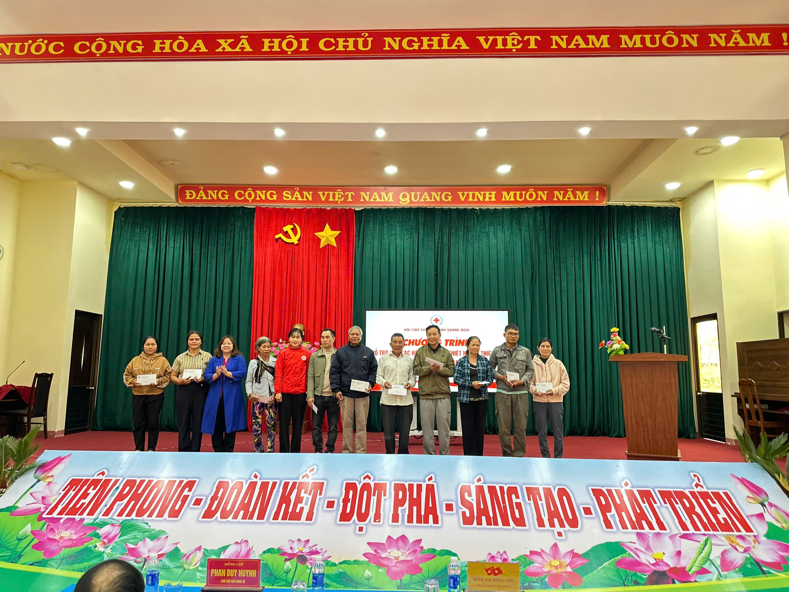 Dự chương trình có đồng chí Đinh Thị Hồng Thu, Phó Bí thư Thường trực Đảng uỷ xã; đồng chí Phan Duy Huynh, Đảng uỷ viên, Phó Chủ tịch UBND xã; đại diện Hội Chữ thập đỏ tỉnh Quảng Ngãi; đại diện Phòng Văn hoá - Xã hội xã; Ban Thường trực Uỷ ban MTTQ Việt Nam xã và đại diện 20 hộ gia đình được nhận hỗ trợ.