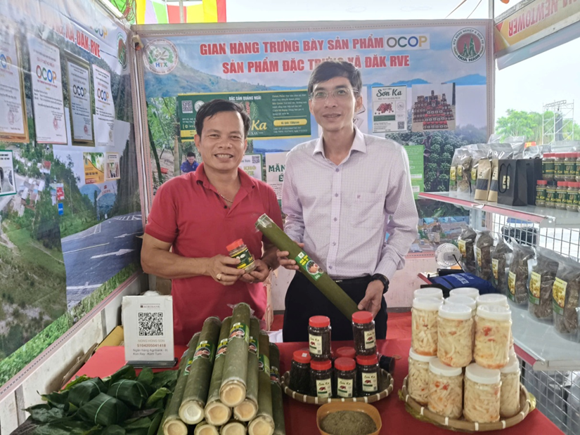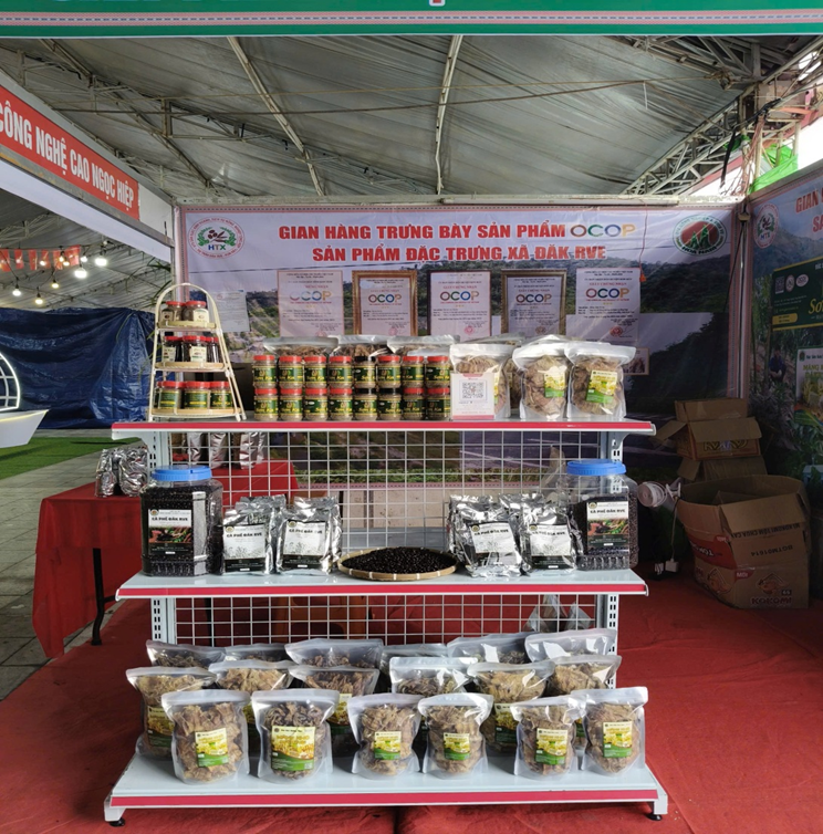Tham gia Hội chợ Công Thương và OCOP Quảng Ngãi lần này có 02 HTX nông nghiệp và dịch vụ Hoa Nam, HTX sản xuất KD DV NN tổng hợp Đăk Rve có 05 sản pẩm OCOP đó là: Măng chua ớt cay, Hạt tiêu Sơn Ka, Măng khô Đăk Rve, Hạt tiêu xay Sơn Ka và sản phẩm đặc trưng cà phê Đăk Rve.